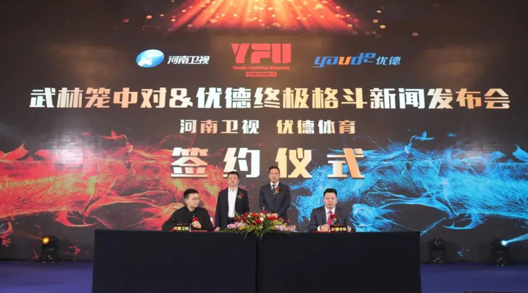2023年1月13日,河南卫视携手优德体育打造的优德终极格斗YFU赛事签约&启动仪式在郑州隆重举行。河南卫视全媒体一体化运营团队总监王春阳、副总监姚玮,武林风海南传媒有限公司执行董事于雷,河南卫视全媒体广告中心副总监贾聃,河南卫视《武林笼中对》栏目主编石青,优德集团创始人牛留栓出席发布会。